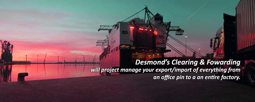At Desmond’s Clearing and Forwarding our renowned knowledge and application of customs law is a massive draw card for clients, and distinguishes our business from other global logistics service providers. In conjunction with highly personalized service and long-term industry relationships. This legal benefit has improved our clients‘ efficiency from their logistics to their industry relationships, ultimately giving their business the edge!